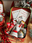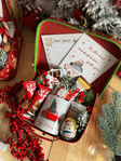 У наборі: • 1 новорічна чашечка • Цукерки KitKat — 2 шт • Батончик Bueno • Батончик Nutella • Батончик Banny • Kinder Country • Kinder Surprise — 2 шт • Kinder шоколад — 4 шт • Скриня, яка залишиться як шкатулка • Ручне новорічне декорування, листівка, розмальовка, великий святковий бант • Лист від Санти або Миколайчика