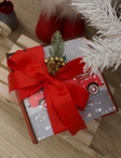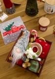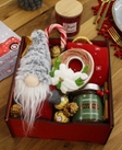 Усередині коробочки вас чекає святкова композиція: • Плюшевий гномик — миле та затишне доповнення свята • Ручний пряник у формі посоха • Шість шоколадних цукерок Ferrero Rocher • Рождественская карамель на палочці • Теплі новорічні шкарпетки • Декор: апельсинові чипси, шишки та палочка карамелі