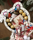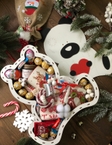 Склад набору: • Дерев’яна подарункова коробка у формі Панди з сердечком • 2 × шоколадні яйця Kinder Surprise • Новорічна ароматна свічка • 12 × цукерок Ferrero Rocher • Новорічна карамель на паличці • 1 × Kinder Country • 5 × Kinder Mini • 2 × KitKat • 2 × Kinder Maxi • Батончик Nutella B-Ready / Nutella Bar • Чашка (керамічна, зимовий або універсальний дизайн) • Теплі зимові шкарпетки (можливість вибрати розмір) • Пряник ручної роботи у формі зимового будиночка • Натуральний хлопок (декор) • Ротанговий декоративний шар • Декор: ягідки, хвойні елементи, новорічні акценти