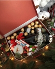 Усі елементи набору акуратно розташовані в дерев’яному сундучку, що створює ефект преміального подарунка. Декор із живої ялини та штучних ягід додає святкового настрою, а солодощі та напій роблять набір повноцінним подарунком для будь-якої новорічної події.